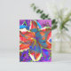 Elegant abstract retro red blue floral watercolor postcard