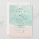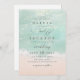 Romantic coastal themed wedding invitation features beautiful turquoise abstract watercolor sparkling ocean wave and beach background, toped with stylish script and elegant font event details, modern and simple, great for sand beach wedding, tropical destination wedding, coastal ocean themed wedding.