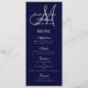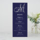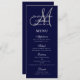 Elegant Affair Navy Blue Script Monogram Wedding Menu