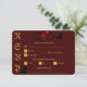 Step into the world of timeless romance with the Elegant Affair RSVP card. Crafted for couples who appreciate the finer details, this personalised response card is an exquisite prelude to your special day. Featuring luxurious golden motifs against a deep burgundy canvas, each element has been thoughtfully chosen to evoke elegance and celebration.