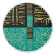 A sophisticated African tribal-inspired geometric pattern featuring intricate golden line art on a turquoise and black background. This seamless design blends cultural heritage with modern aesthetics, making it perfect for home decor, fashion, and accessories. Ideal for those who love ethnic art, African motifs, and bold geometric designs.