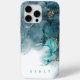 Elegant Alcohol Black Gold Glitter Marble iPhone 15 Pro Max Case, features your personalised name, Perfect gift for her for a birthday, mum for Mother's Day, sister, or best friend.