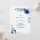 Invite your friends and loved ones to your wedding to witness and celebrate the beginning of your lifelong journey with this elegant blue floral wedding invitation. Designed for the budget-savvy couple, the reception venue location, RSVP response request, accommodation details, and any other information your guests may require can be included on the reverse side of this invitation, saving money on extra stationery. The customisable text allows you to effortlessly add the bride and groom’s names, wedding date, and the necessary details of your celebration. Various paper types and corner styles are available for your unique invitations, along with the option to download if you prefer a digital format.