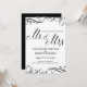 Elegant Swirls All in One Wedding Invitation (Black & White): This unique wedding invitation features elegant swirls and beautiful calligraphy / typography. It also has room on the back for three wedding details headings. It's set up for Accommodations, Reception and Registry / Wishing Well (but you can edit these by choosing "customise more").