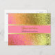 Lovely all purpose postcard done in graphics of a gold and pink crinkled foil look. A gold edged pink band, runs across the middle of the card and has text ready to personalise.