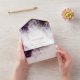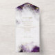 All in One Wedding Reception and RSVP Tri-fold Invitation - Beautiful royal purple amethyst gemstone crystal geode accented with sparkling marbled gold nugget veining and quartz crystal - coordinating reverse.