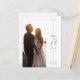 The front of the card features a captivating vertical photo, serving as the backdrop for the couple's names, elegantly displayed in trendy gold type on a crisp white background. A decorative ampersand adds a touch of charm and sophistication to the design, symbolising the unity and partnership of your love.