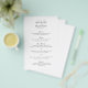 Elegant black and white budget wedding menu (printed on flyer paper) featuring a simple and minimal design with a large ampersand behind the names of the bride and groom in a traditional serif font. A classic choice that is perfect for a formal wedding.