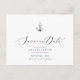 Elegant Navy Blue Anchor, Nautical and elegant modern calligraphy script Save the Date postcards. Copyright © 2016-2019 Bombino Designs.