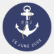 Elegant Anchor Nautical Wedding Initials Classic Round Sticker