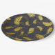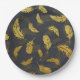 Elegant And Chic Black And Gold Feather Pattern Paper Plate