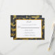 An elegant and modern rsvp card. A pretty pattern - black background with fancy gold feathers floating downward. Sophisticated stylish design. The centre is overlaid with a cream coloured frame surrounded by a gold border.