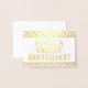This elegant, clean gold foil birthday greeting card design features the message "HAVE A GREAT BIRTHDAY" on the front, along with a customisable message on the inside. It could be given to somebody celebrating a birthday.
