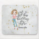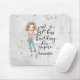 This mouse pad features an elegant woman with the text "Just a girl boss building her empire". This can be personalized with your name in elegant calligraphy. It has a sparkly gray background.