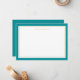This elegant and feminine personalised note cards features thick teal and thin gold border.