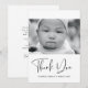Modern and simple baby shower thank you card. Fully customisable with your baby's picture, name and other details. Editable colours and background.