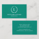 These professional business cards were made for lawyers and those involved in legal services. They feature a emerald subtle textured background. On top of the background is a laurel wreath with room for you to add your own monogram. Below is room for your name and job title. The back of the card contains room for all of your contact details.