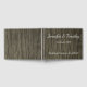 This basic wedding or marriage reception guest book features the message "Wedding Ceremony Guestbook", the custom names of the married couple and the wedding reception date. It also features a background with a rustic wood like pattern. It could be used to record happy messages for the newly married couple.