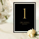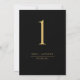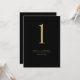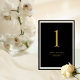 Help your guests find their table with this elegant modern black and gold table number. Double sided cards. Clear space all around giving you the liberty to use use table holder or frame. Attractive black background and golden hue text. Several colour options. Matching seating chart cards and menus available. Part of our "Wedding and Event Products in Black" collection with a variety of coordinating products available.