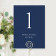 Help your guests find their table with this elegant modern navy blue table number. Double sided cards. Clear space all around giving you the liberty to use a table holder or frame. Attractive navy blue background and white text. Several colour options. Matching seating chart cards and menus available. Part of our "Dusty Rose and Navy Wedding and Events Products" collection with a variety of coordinating products available.
