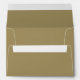 Custom A7 wedding invitation mailing envelopes feature formal style ivory return address text with scroll and antique gold (can be customised) printed background colour.