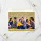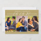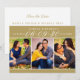 These modern and stylish wedding save the date announcement cards include three 2 x 3" engagement photos with the date featured in elegant script writing. Personalise the card template wording on the front and back of the card for your big day. The antique gold background and text colour can be customised to coordinate with your wedding colour scheme.