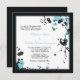 This stylish 5.25x5.25 square Wedding Invite has a white background with an aqua blue and soft black floral design at the top right and bottom left side. On the left, you can easily customise this with your wedding ceremony information.