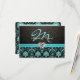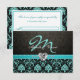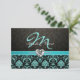 Elegant Aqua Blue and Black Damask Monogram RSVP Card