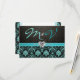 Elegant Aqua Blue and Black Damask with Diamonds RSVP Card