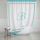 Elegant Aqua Blue Border Script Monogram Shower Curtain