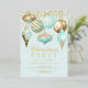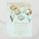 This elegant holiday invitation features beautiful Christmas ornaments in aqua and gold with gold string lights on a soft aqua background. Gold foil text can be easily changed by clicking "Personalise". Perfect for those family or business holiday parties.
