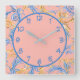 Elegant Arabesque Pink Blue Swirl Pattern Square Wall Clock
