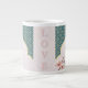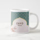 Celebrate life’s most beautiful milestones with this exquisite personalized jumbo coffee mug. Featuring a stunning deep teal and gold arabesque arch set against a hibiscus-pink wedding sheen background. The design is also adorned with gentle watercolor magnolia blooms—symbols of grace, purity, and new beginnings.