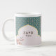 Elegant Arabesque Wedding Mug – Deep Teal & Gold Arch with Watercolor Magnolia | Luxury Jumbo Coffee Mug for Bride, Groom, Anniversary, Bridal Shower & Eid Gift.