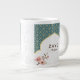 Celebrate life’s most beautiful milestones with this exquisite personalised jumbo coffee mug. Featuring a stunning deep teal and gold arabesque arch set against a soft white wedding sheen background, the design is adorned with gentle watercolor magnolia blooms—symbols of grace, purity, and new beginnings.