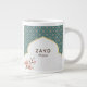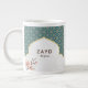 Elegant Arabesque Wedding Mug – Deep Teal & Gold Arch with Watercolor Magnolia | Luxury Jumbo Coffee Mug for Bride, Groom, Anniversary, Bridal Shower & Eid Gift.