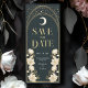 Capture timeless elegance with this Celestial Art Nouveau-inspired Save-The-Date! Featuring a radiant golden arch, delicate white flowers, and shimmering stars against a rich blue background, this design sets the tone for a sophisticated celebration. Perfect for weddings, galas, and milestone events! Please note that the gold on this product is NOT real foil; it is printed flat.