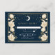 Capture timeless elegance with this Celestial Art Nouveau-inspired RSVP! Featuring a radiant golden arch, delicate white flowers, and shimmering stars against a navy background, this design sets the tone for a sophisticated celebration. Perfect for weddings, galas, and milestone events! Please note that the gold on this product is NOT real foil; it is printed flat.