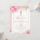 Elegant Arch Gold Glitter Pink Floral Girl Baptism Invitation