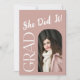 Announce your graduate’s achievement with this modern arch graduation invitation featuring a stylish dusty rose background and bold typography. The custom photo card design includes the celebratory phrase "She Did It!", making it perfect for high school or college grads. Personalise with your graduate’s name, class year, and special message to create a unique keepsake.