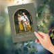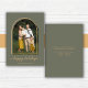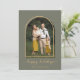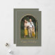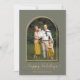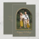 Elegant Minimalist Arch Green Gold Happy Holidays Photo Cards featuring your photo and our stunning chic boho typography and geometric arch in dusty sage green and saffron yellow gold. Perfect for your elegant holiday cards! Please contact us at cedarandstring@gmail.com if you need assistance with the design or matching products.