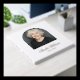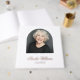 Memorial funeral guestbook featuring your photo inside an arch frame and and the name in an elegant calligraphy font with dates below.