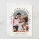 Chic light cream elopement or private wedding announcement and reception invitation. The front features your photo in an arched frame and "Happily Ever After Party" in elegant typography. Under your photo, add your first names, wedding date and location. On the reverse side, personalise your invitation, add your names in a signature-like script and input your wedding website address to create a scannable QR code for your guests to scan to RSVP online and obtain additional details.