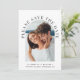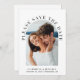 Modern wedding save the date card featuring your photo in an arched frame surrounded by "Please Save The Date" in elegant text. Under your photo, add your first names, wedding date and location. On the reverse side, personalise the save the date details in simple typography and input your wedding website URL address to create a scannable QR code for your guests to easily visit your website.