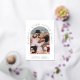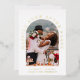 Stylish elopement or private wedding announcement and reception invitation featuring your photo in an arched frame and "Happily Ever After Party" in elegant typography in real gold foil. Add your first names, wedding date and location. On the reverse side, personalise your marriage announcement and party or reception invitation and add your names in a signature-like script.
