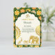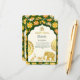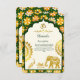 This elegant Hindu wedding enclosure card features a rich emerald green background with a marigold floral pattern and an ivory moghul arch. Intricate gold details of lotus, peacock, elephant, and an Om symbol frame your personalised details, perfect for sharing additional wedding information with your guests in a luxurious and traditional design.