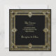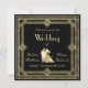 Classic art deco frame and elegant typography with a gold silhouette of a bride and groom. Customise the front and reverse with your Wedding details.