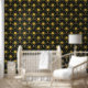Elegant Art Deco Gold Sun Pattern on Black Wallpaper