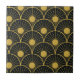 Elegant Art Deco Golden Abstract Sun on Black Ceramic Tile