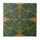 Elegant Art Deco Mustard & Teal Gouache Scallops Ceramic Tile